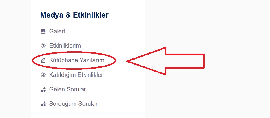 Menüden Ayarlar ➔ Medya & Etkinlikler ➔ Kütüphane Yazılarım bölümüne gidin.