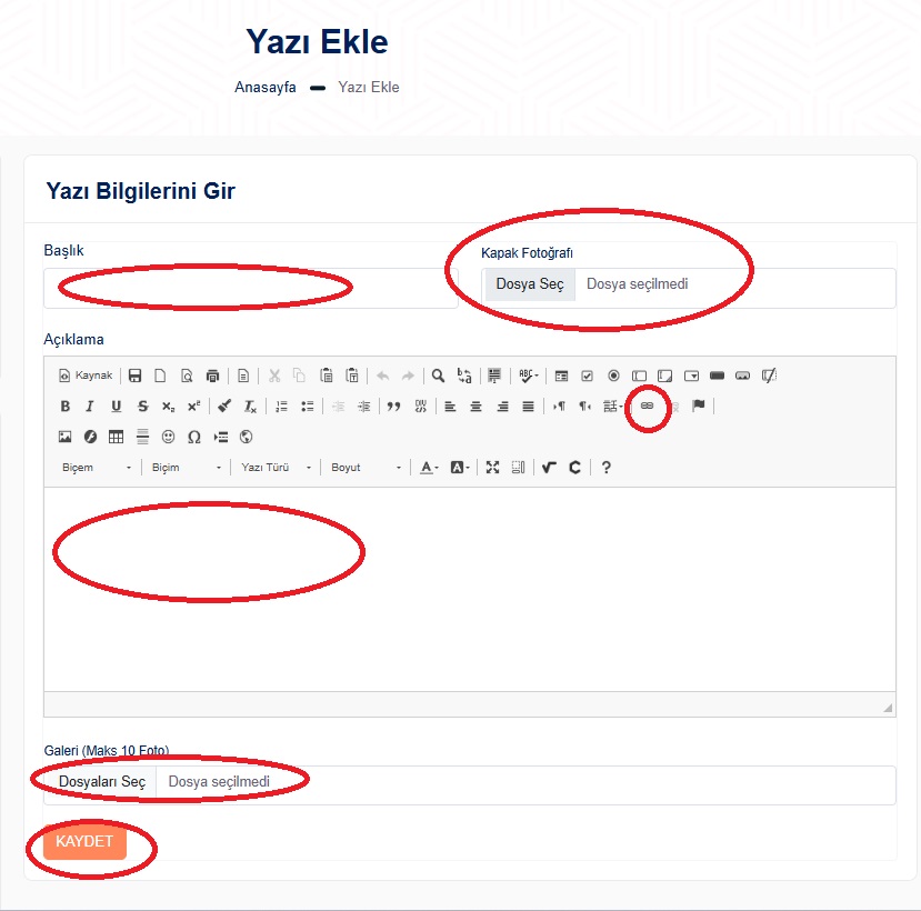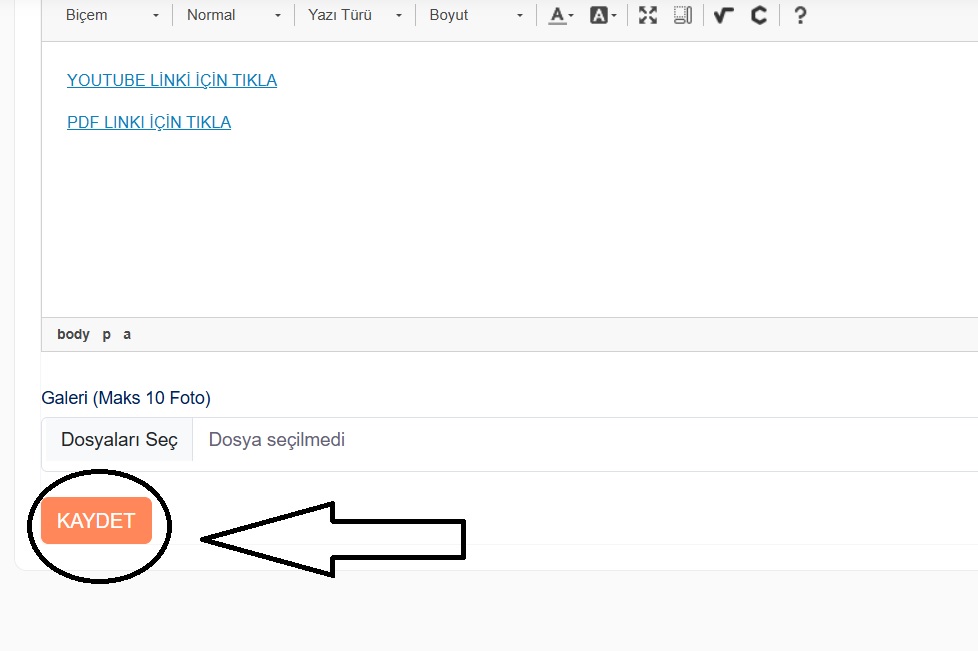 Tüm içerik girişleri ve düzenlemeleri bittikten sonra sayfanın altındaki “KAYDET” butonuna tıklayın.