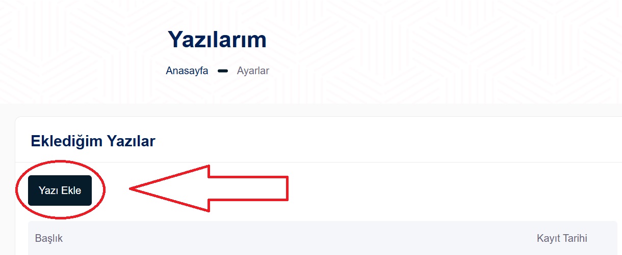 Açılan ekranda “Yazı Ekle” butonuna tıklayın. (Görsel 1 ve Görsel 2)