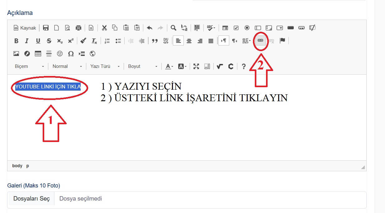 İçeriğe ana görsel dışında resimler eklemek isterseniz, en alttaki Galeri bölümünü kullanabilirsiniz. (Görsel 3)