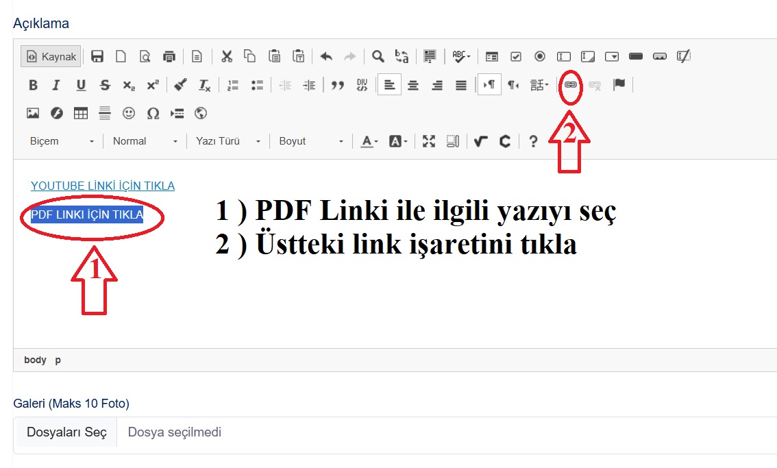 Dosya Ekleri: PDF vb. doküman bağlantıları.