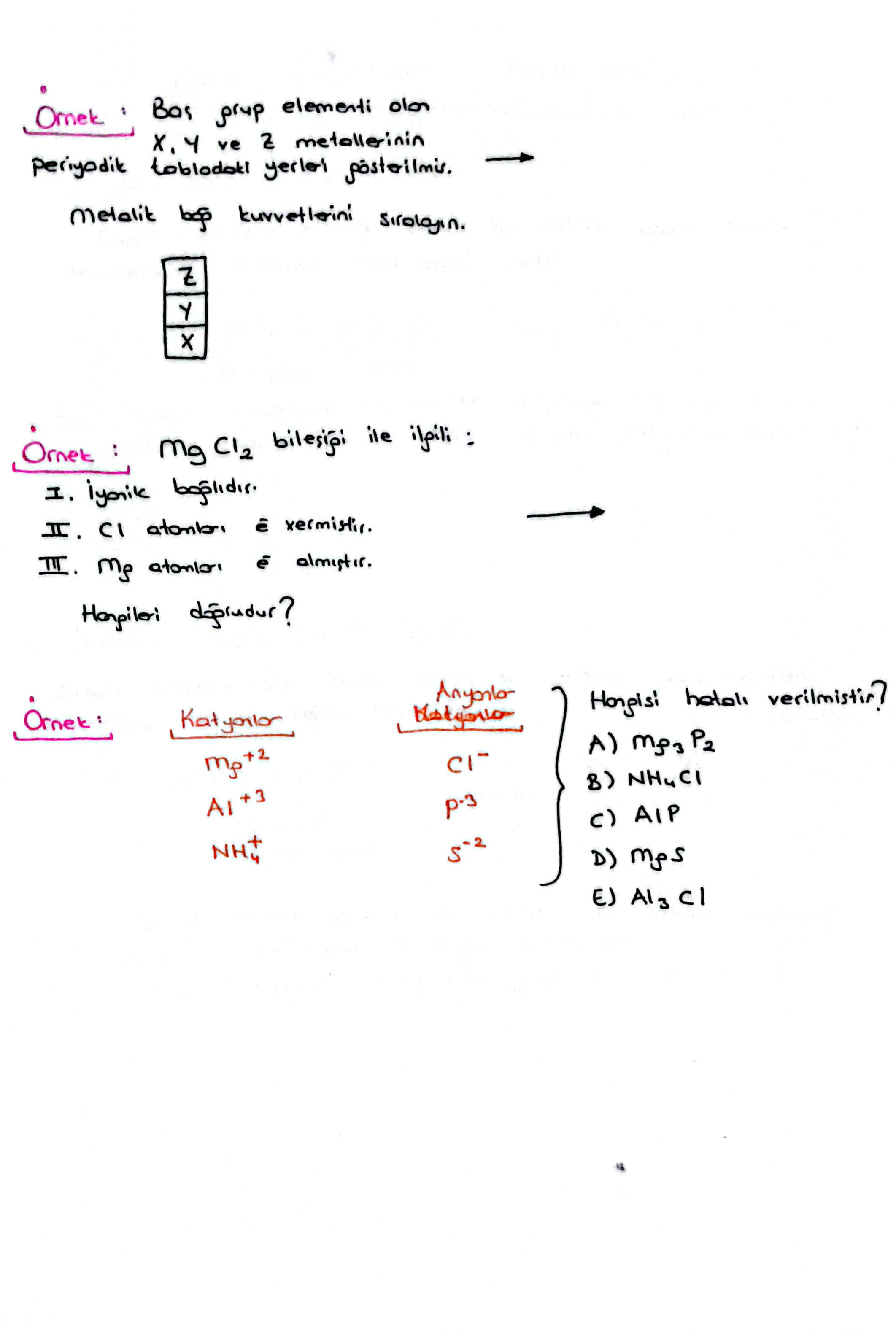 Bu dosyada metalik bağ, iyonik bağ ve kovalent bağ konularına ait özet notlar yer almaktadır.