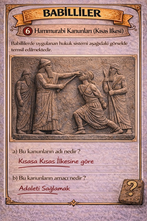 Ünlü Hammurabi Kanunları ve kısas ilkesini kavrar.